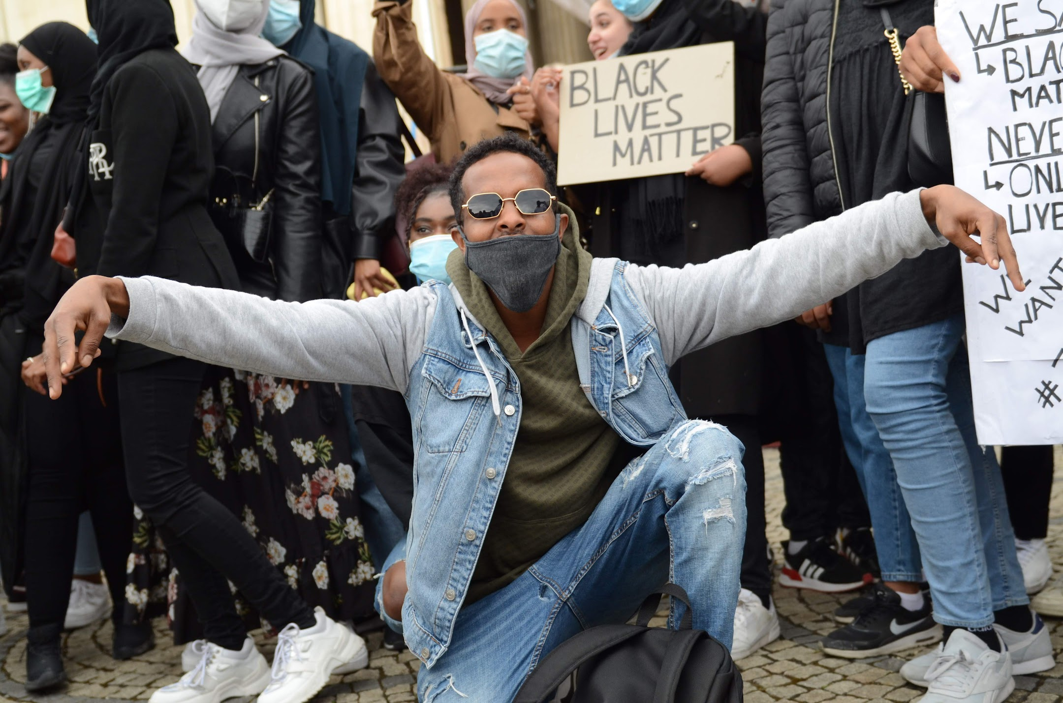 Los manifestantes siguieron la consigna de ir vestidos de negro. Además, usaron los correspondientes barbijos de la época. Ellos se pronunciaron con fuerte indignación por el asesinato del estadounidense George Floyd. Derek Chauvin, un policía en la ciudad de Minnesota, fue el responsable del asesinato. La manifestación fue pacífica y sin incidentes, un ejemplo de civismo.